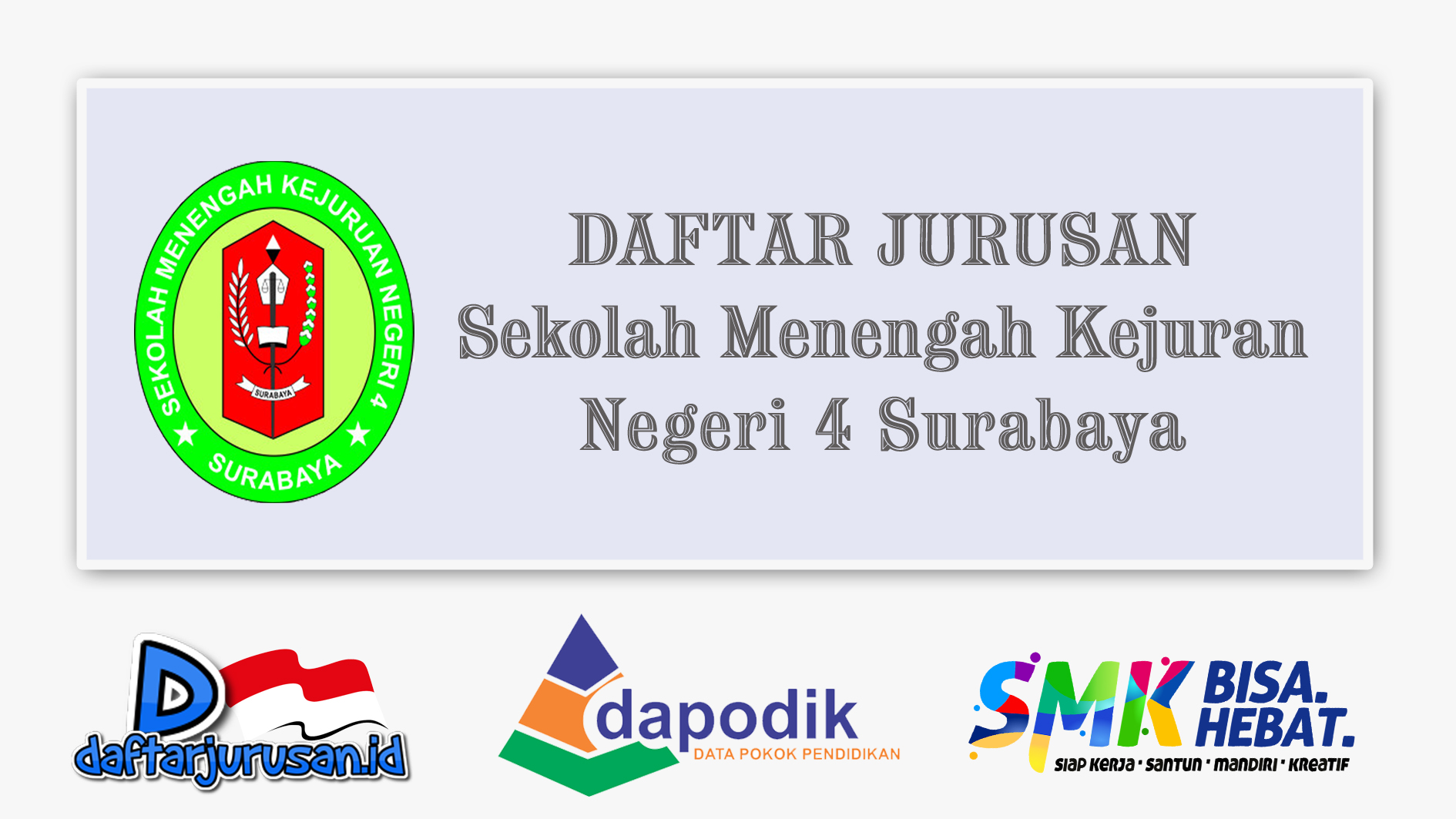 2 komentar untuk "Daftar Jurusan SMK Negeri 4 Surabaya"